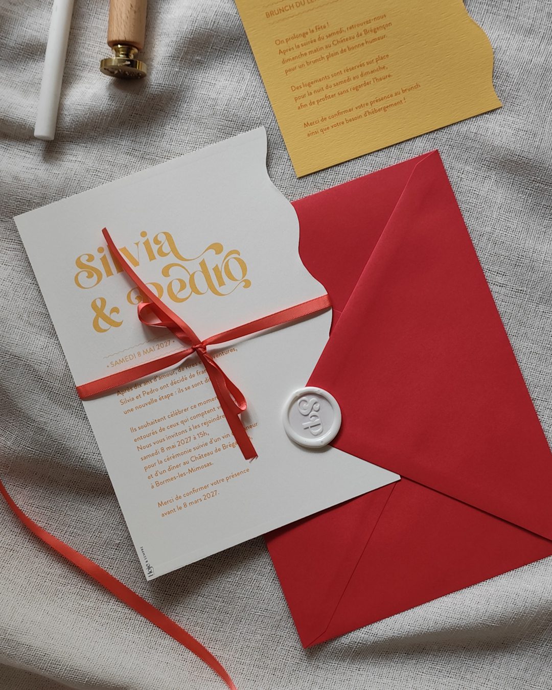 – une partie des faire-part avec un texte “mariage complet”,