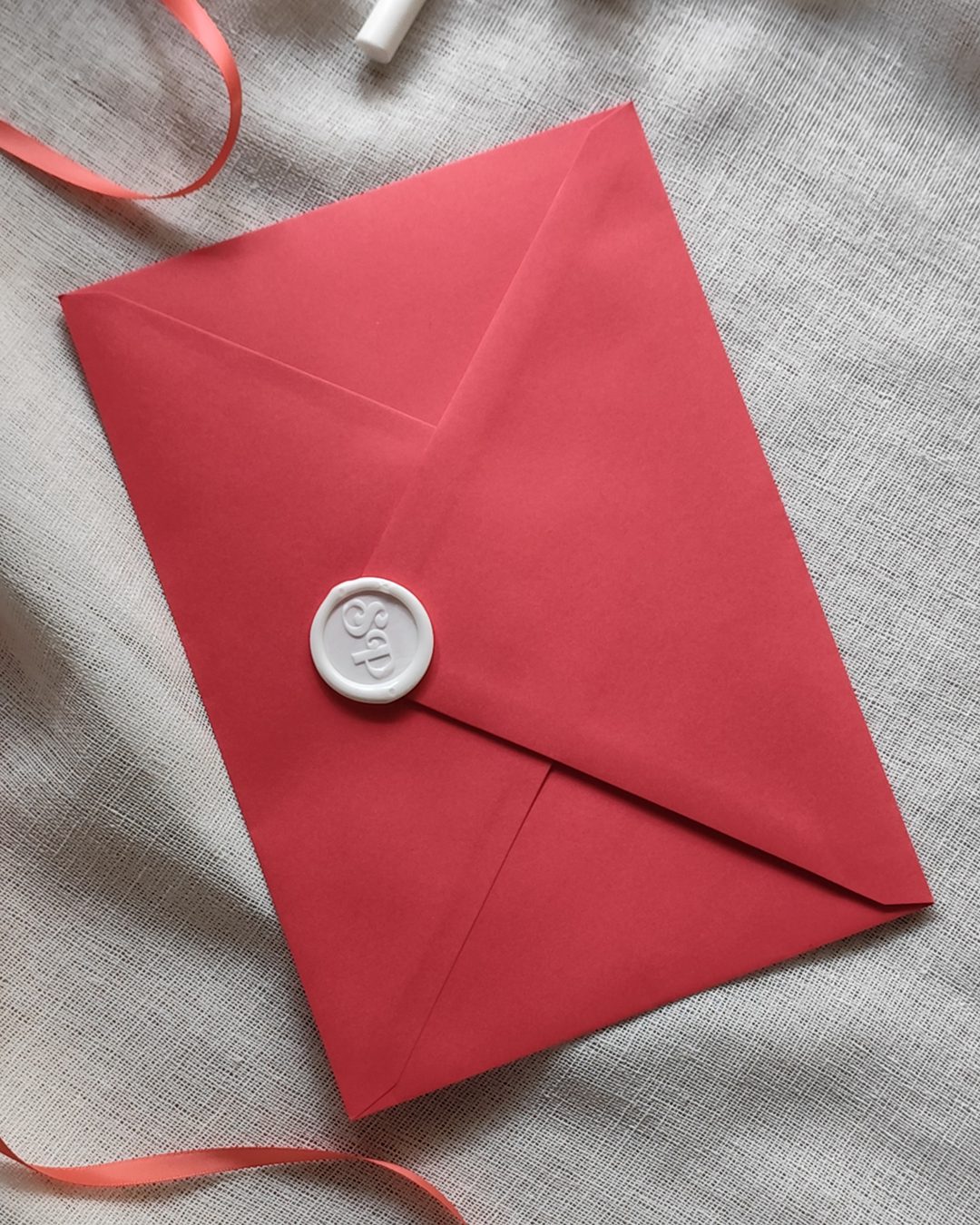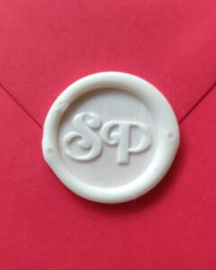 – Cachet de cire monogramme, couleur blanc mat