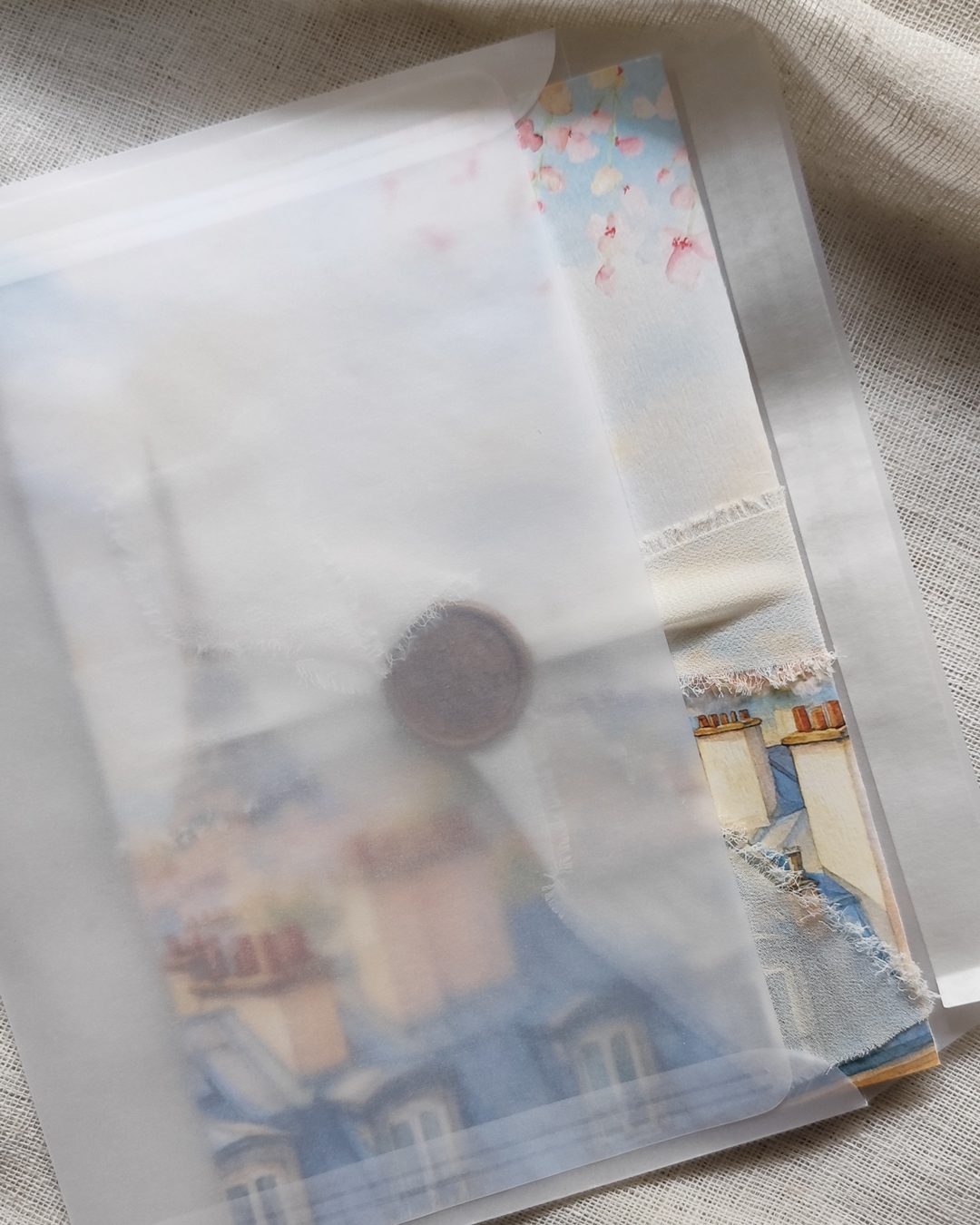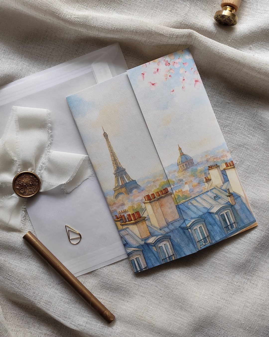 – Carton supplémentaire format 100 x 144 mm, imprimé quadrichromie recto seul, vendu avec trombone doré en forme de goutte d'eau