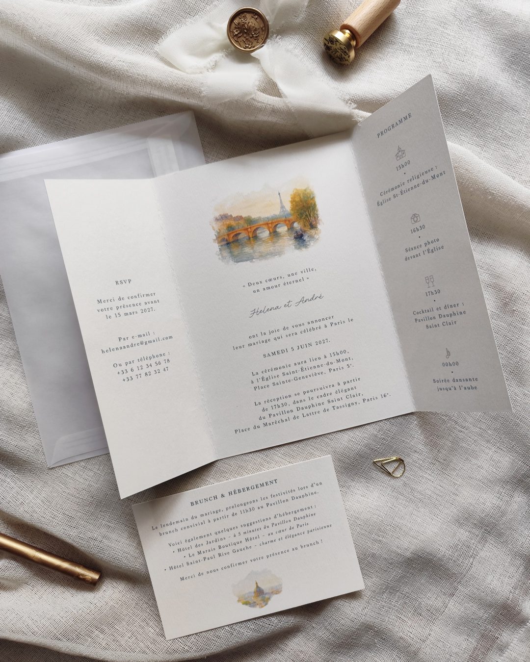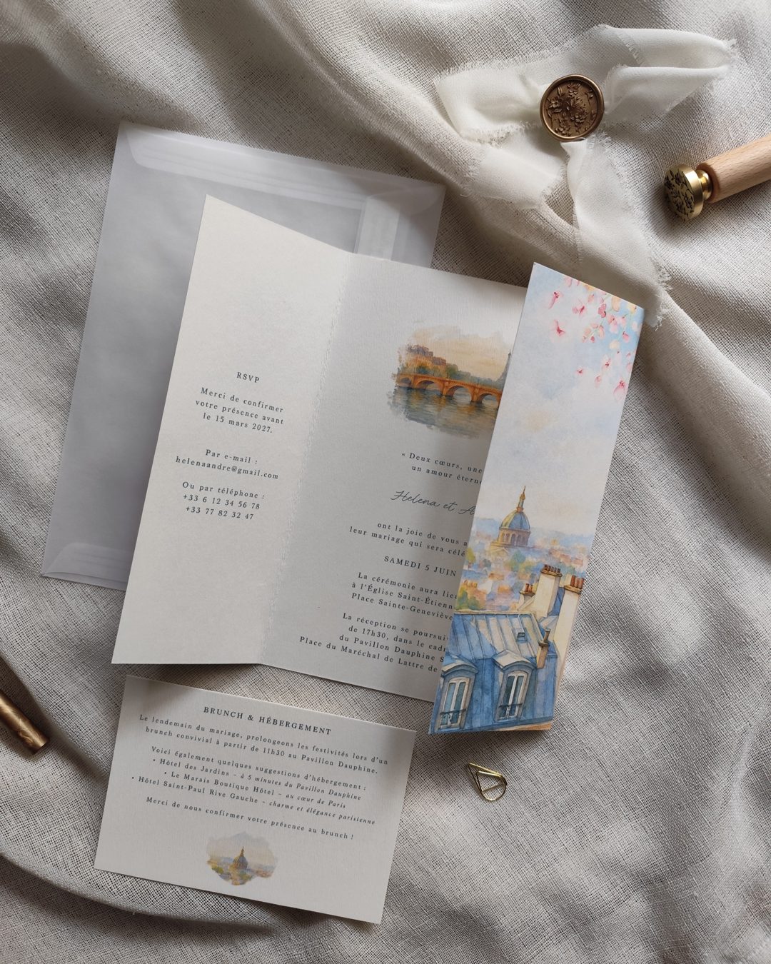 Chaque faire-part est personnalisé avec les textes fournis lors de la commande.