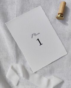 Tal como o convite, este marcador de mesa da coleção Coimbra mantém uma estética minimalista e intemporal, realçando subtilmente cada elemento.