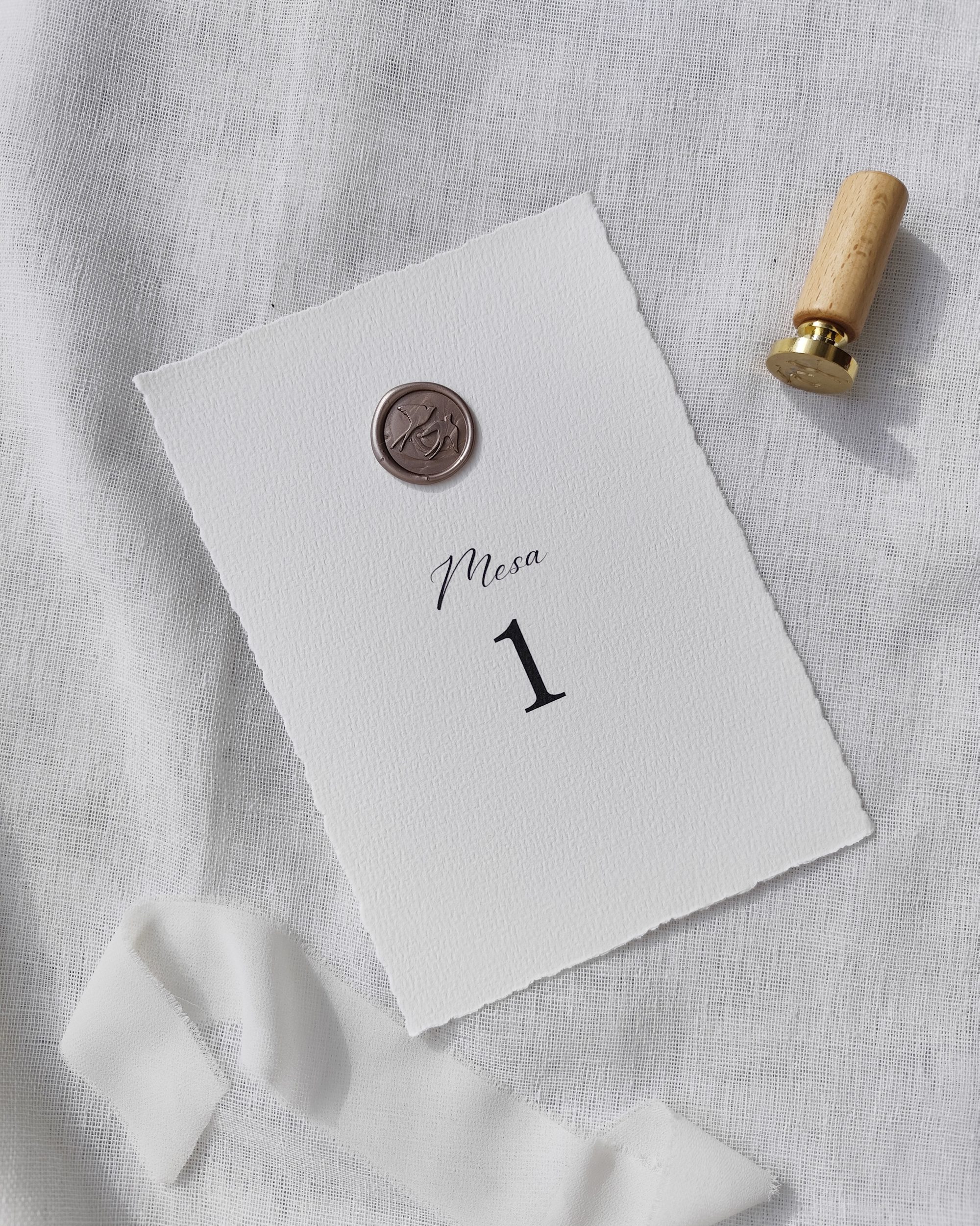 O marcador de mesa da coleção Coimbra combina com toda a coleção «Coimbra» para o seu casamento. Esta coleção distingue-se por um lacre de cera que representa duas andorinhas em voo. Um detalhe poético que simboliza o amor, a fidelidade e representa Portugal.