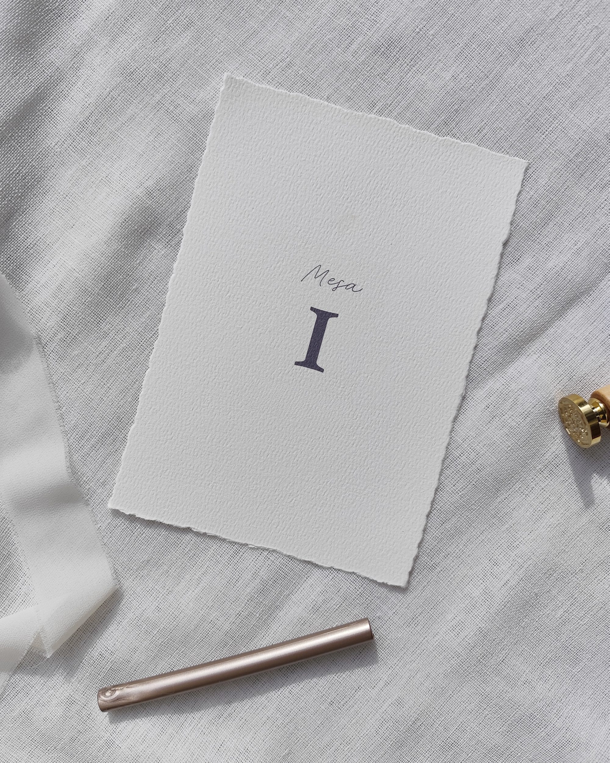 À semelhança do convite da coleção Lisboa, o número de mesa apresenta um design minimalista e elegante, de forma a realçar o conteúdo com subtileza e equilíbrio.