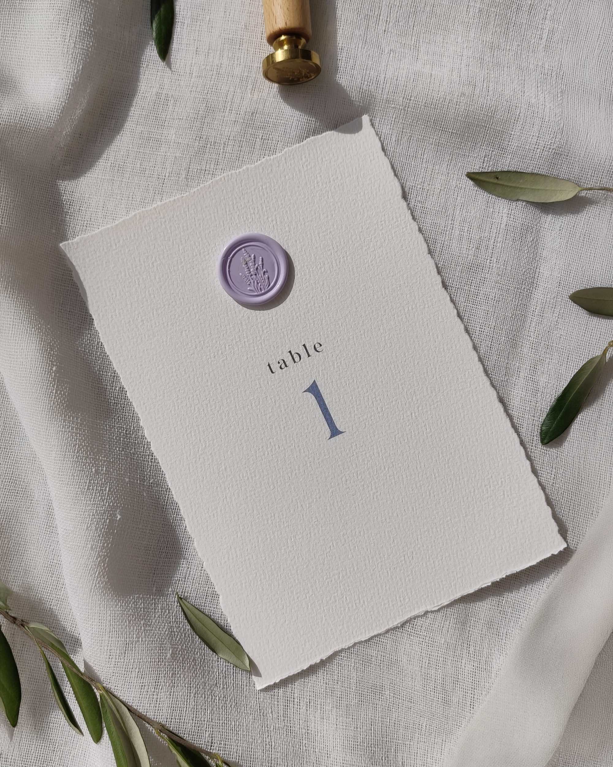 O marcador de mesa «Provença» é perfeito para um casamento no Sul, rodeado de oliveiras e campos de lavanda. Impresso em papel de algodão de alta qualidade com bordas irregulares, destaca-se pelo seu aspeto texturado e artesanal.