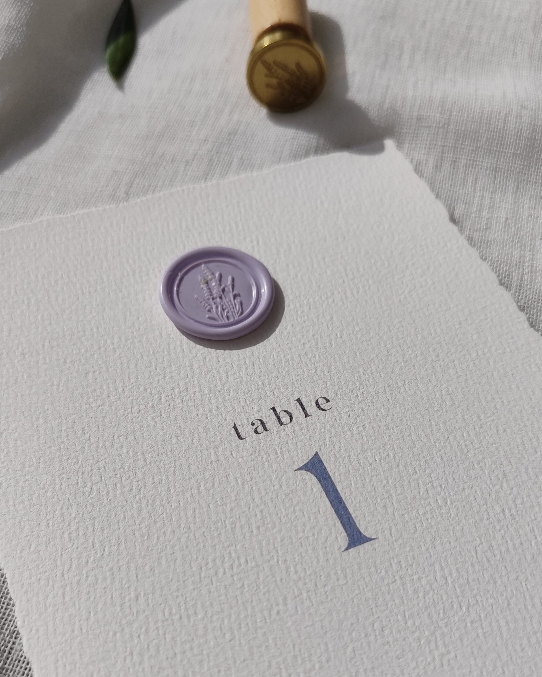 – Selo de cera cor lavanda e motivo de lavanda opcionais