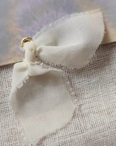 Na linha do convite da coleção Provença, o marcador de lugar pode ser decorado com um lacre de cera, uma fita de musselina de seda ou ambos, conforme desejar. Estes acabamentos conferem relevo e um toque de requinte à mesa. A sua subtil tonalidade lavanda evoca os campos em flor, os aromas de verão e a atmosfera acolhedora da Provença francesa.