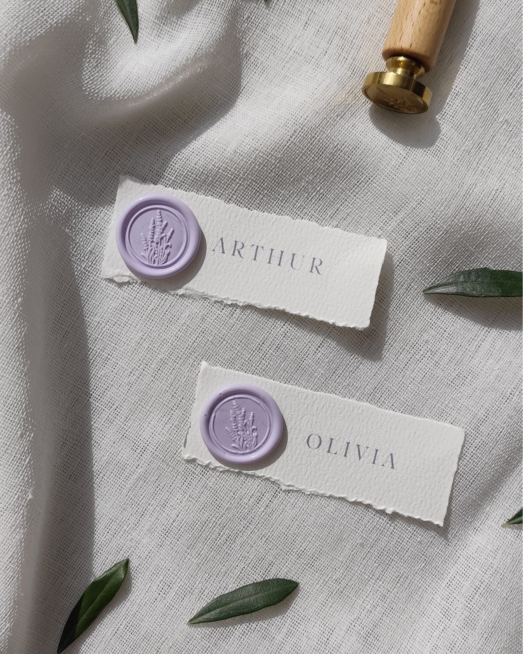 – Selo de cera cor lavanda e motivo lavanda opcionais