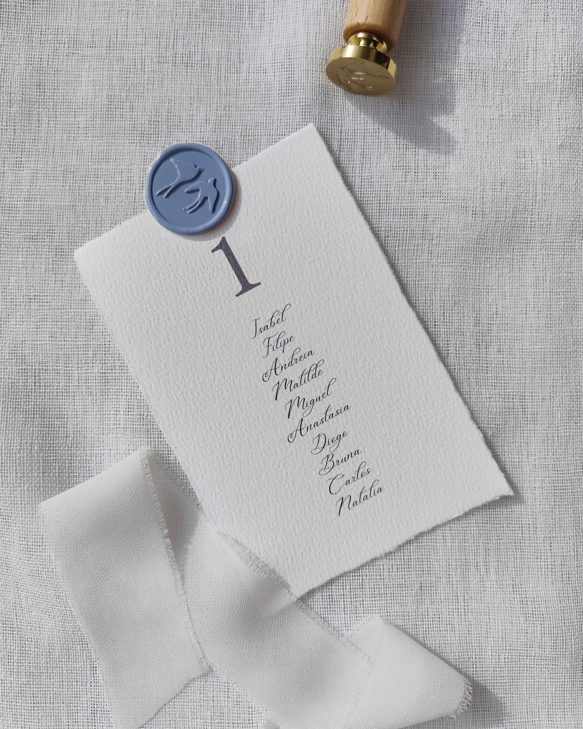 – Lacre de cera opcional, com cor champanhe ou azul-acinzentado à escolha