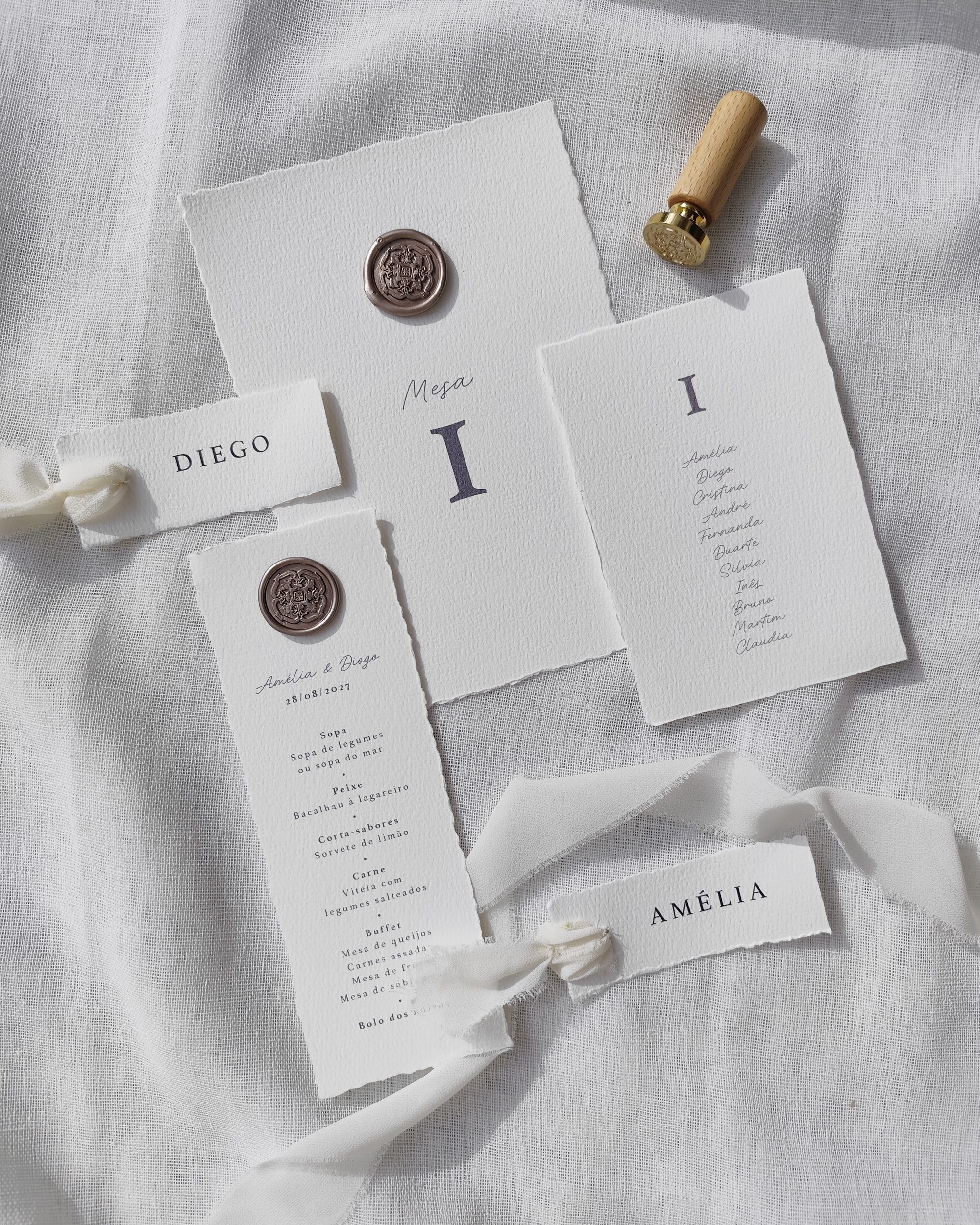 Ideal para um casamento que homenageia Portugal, entre autenticidade e tradição, este cartão de mesa reflete uma atenção especial aos mínimos detalhes da sua papelaria.