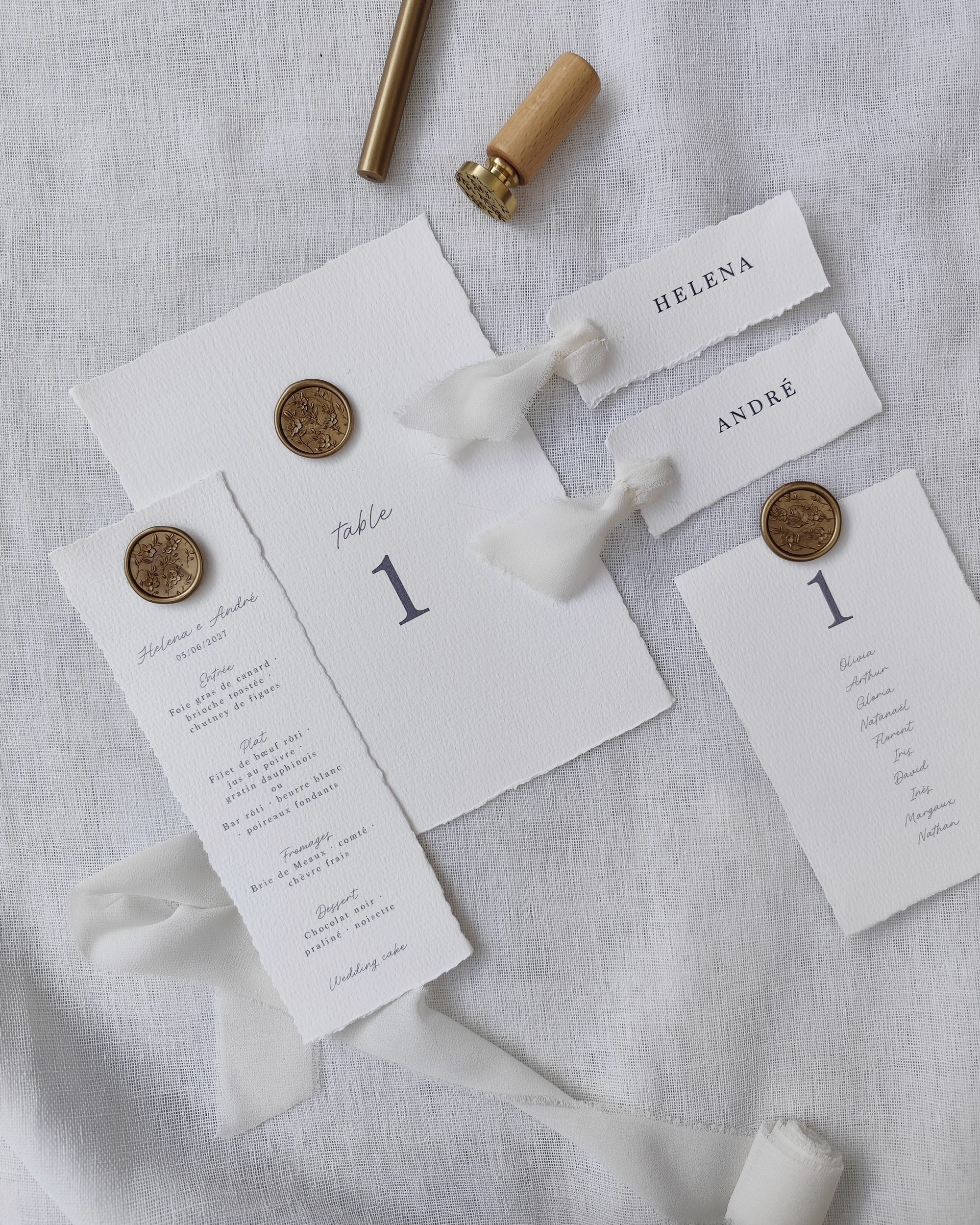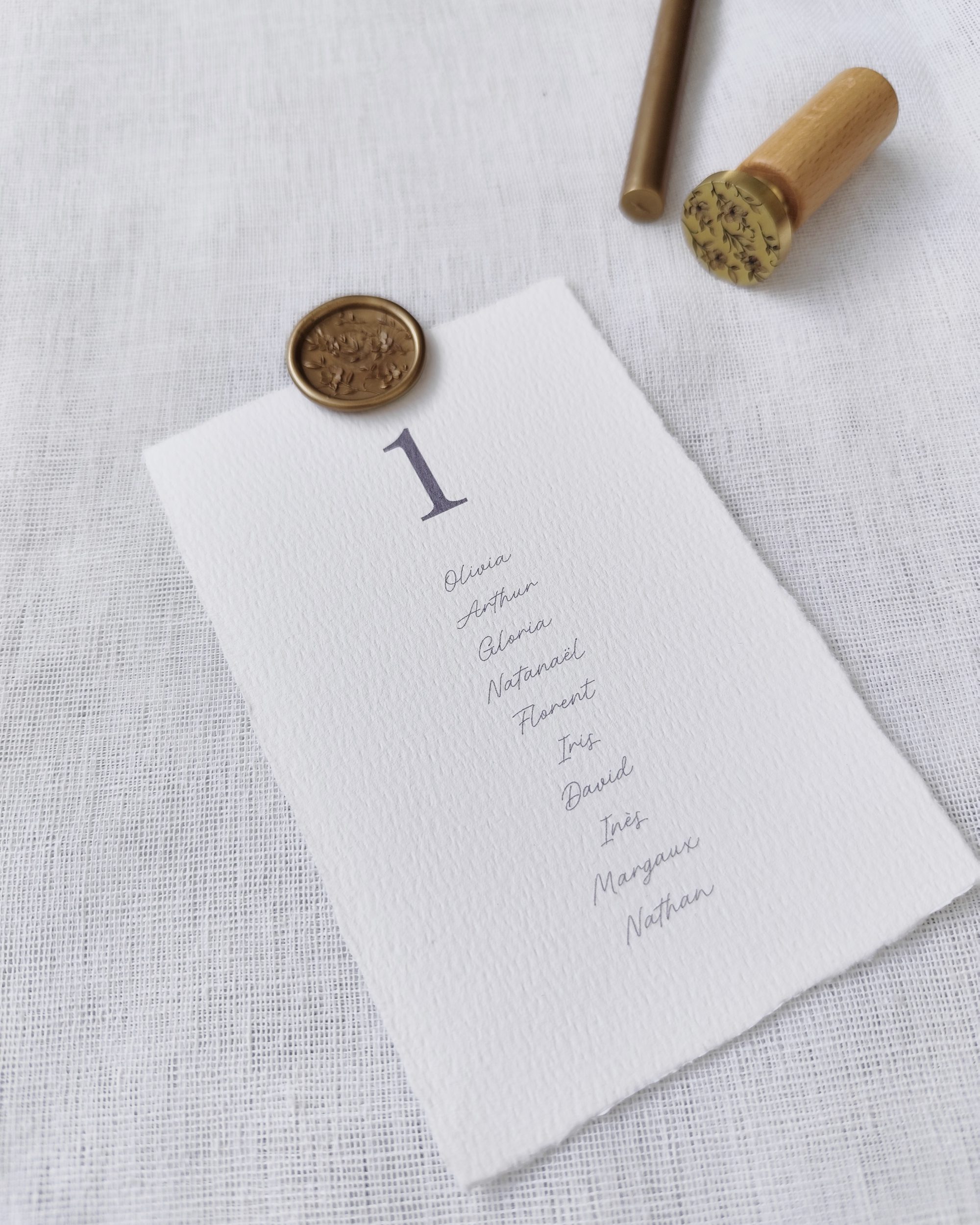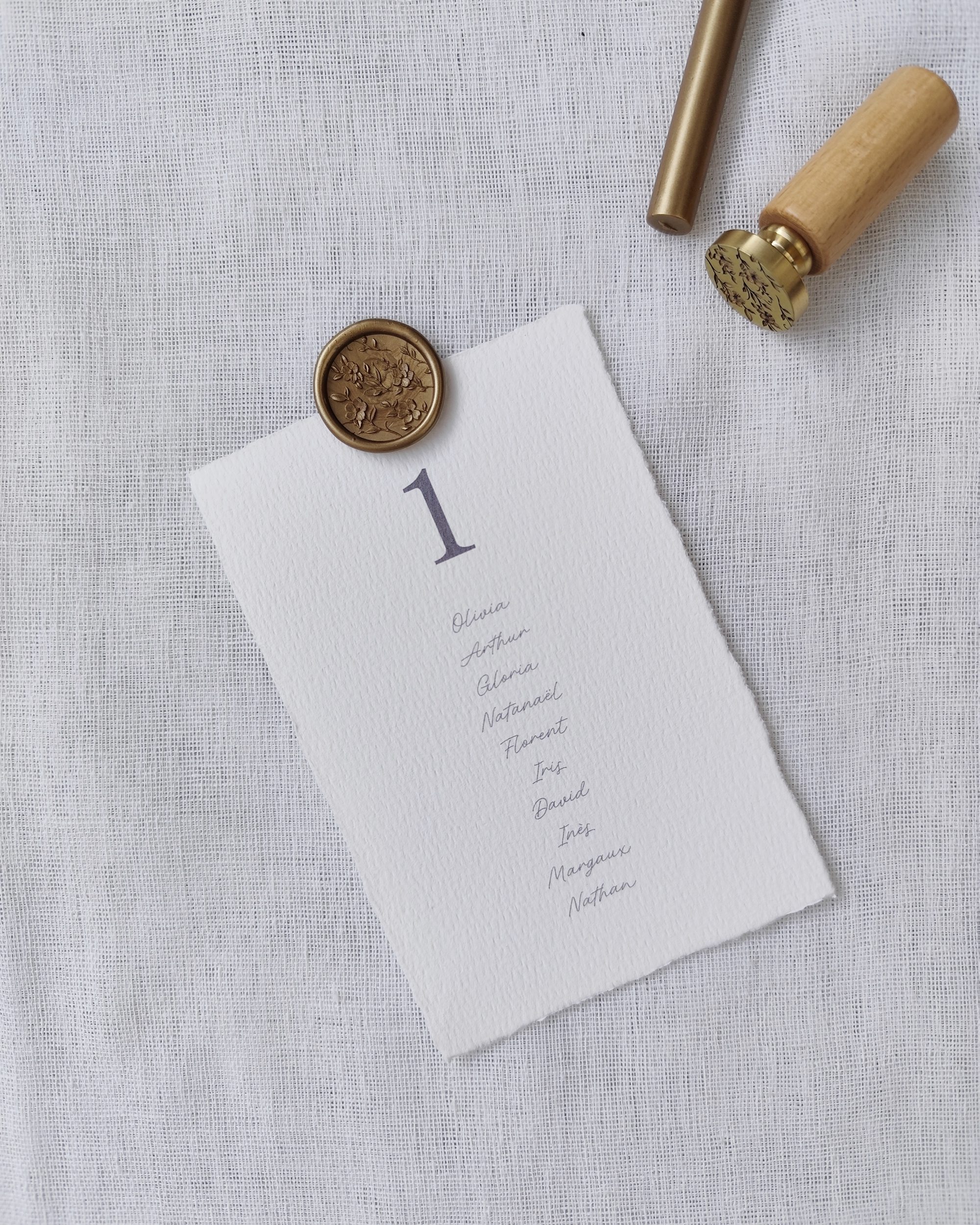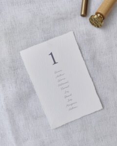 O placard de mesas da coleção “Paris” são pequenos formatos impressos em A6 em papel de algodão de alta qualidade com bordas irregulares. Pode dispô-los como desejar, por exemplo, sobre um espelho ou uma placa de acrílico. Encarnam uma elegância discreta e um requinte intemporal, perfeitos para embelezar a sua receção com delicadeza.